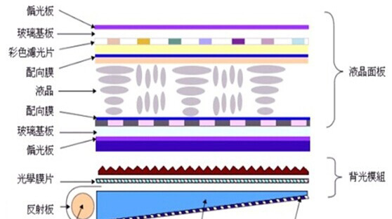 由于TFT-LCD液晶显示器为非自发光显示器,须借助背光产生光源才可以显示画面。因此背光模块为TFT-LCD显示器中不可或缺的关键零组件;背光模块一般由背光光源、多层背光材料及支撑框架集成。背光质量决定了液晶显示屏的亮度、出射光均匀度、色阶等重要参数,决定了液晶显示器的发光效果。从传统背光光源所发射出来的光,经过反射膜、扩散膜等等的光学薄膜之后,只有约60%的光通过背光模块进入到偏光膜,最后经过液晶面板,透射出来的仅剩下不到6%的光,因此背光设计和材料的选择很重要。