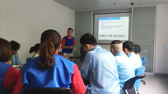 韩经理为员工做消防培训及本次演练注意事项 消防演练中,公司所有部门竭力配合。当模拟警报响起时,各区域安全负责人立即组织本区域员工井然有序地按照规定疏散路线,迅速撤离了现场,到达指定应急集合点。