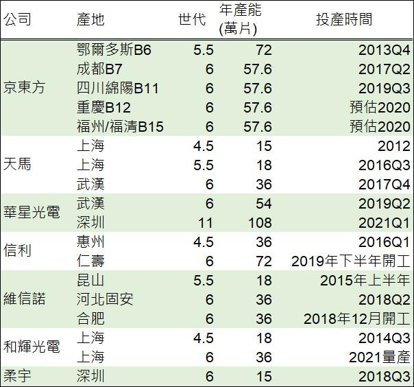 大尺寸面板方面,数据显示 2018 年~2021 年,全球大尺寸 TFT-LCD 面板产能将增加 7770 万平方公尺,产能提升 31%,但 2021 年市场需求预估则约在 4900 万平方公尺。