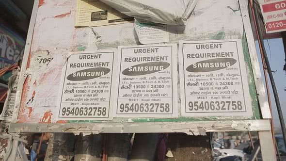 印度诺伊达工厂周围张贴的三星电子招聘广告