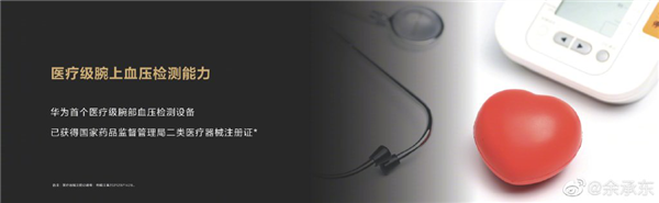 余承东表示,华为首个腕部血压检测设备已通过临床试验并获得注册证。