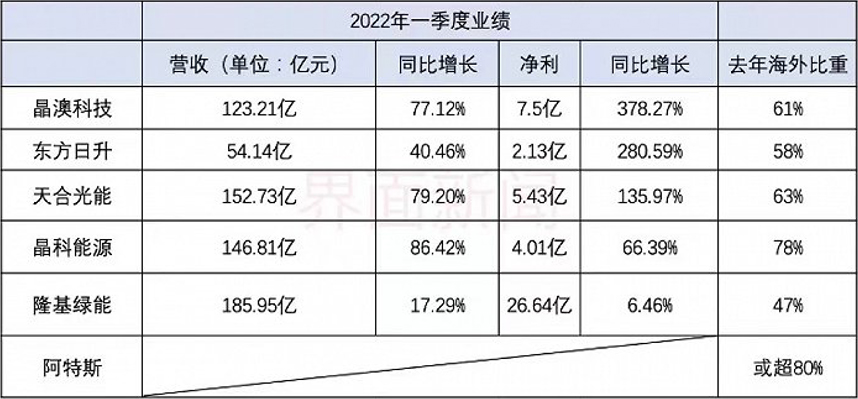 组件是国内光伏行业最为主要的出口环节。一季度海外需求提升,也促使国内光伏组件龙头出货量及业绩上涨。