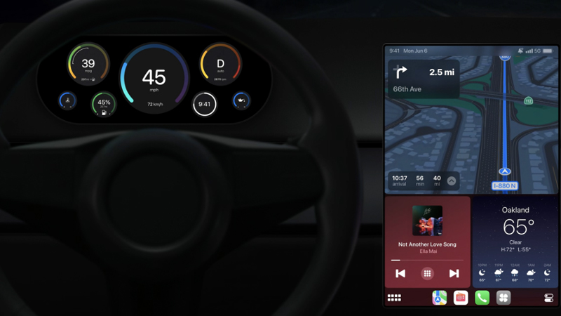 很显然,苹果现在还不打算公布自己造车的计划,而是展示出了一套,功能更全面,能接管汽车大部分电子功能,控制车内所有屏幕的全新CarPlay。