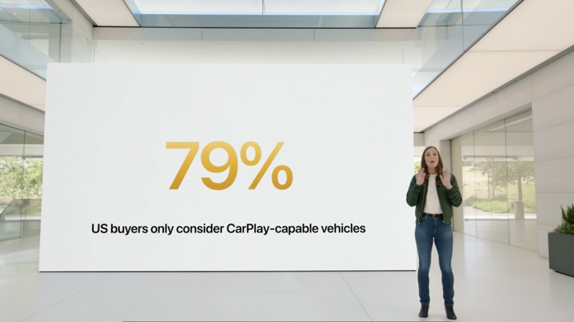 苹果表示,美国98%的车都可以使用CarPlay,79%的美国消费者表示自己只会买支持CarPlay的汽车。