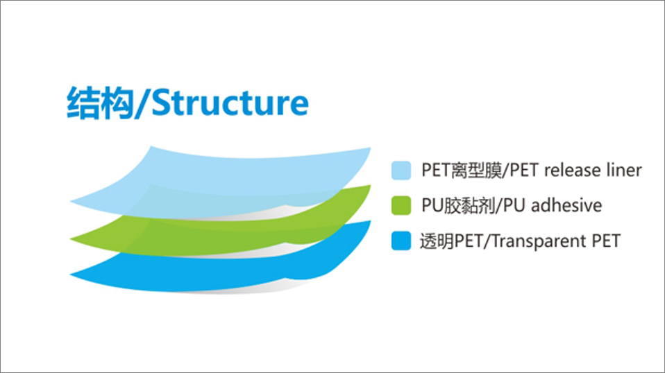 PU保护膜以透明PET为基材,涂以聚氨酯类胶粘剂制成的自排泡性保护膜,具有优良的润湿性,对贴附材料无污染,尤其适用于在生产加工和运输过程中保护触摸屏,也同样适合在运输过程中保护智能手机和平板电脑。