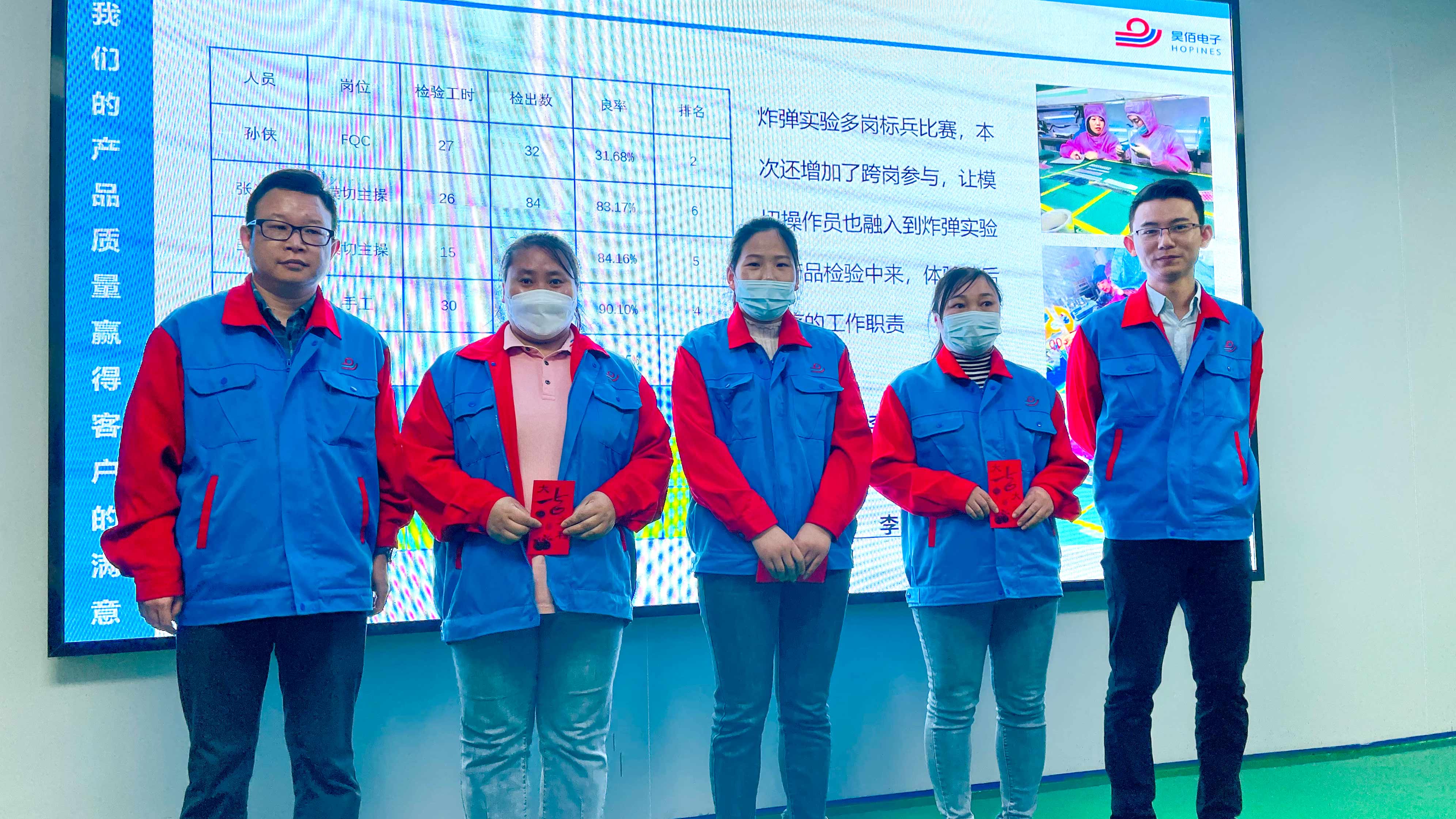 在“质量月”活动期间,进行了包括宣誓质“量意识培训”、“炸弹实验”、模切技能比拼、质量攻关、知识问答竞赛在内等一系列质量活动。且评选出来自不同岗位的标兵成员及团队。
