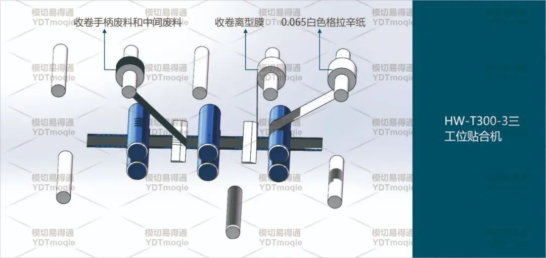 在贴合机上排除产品外框废料,成品收卷。