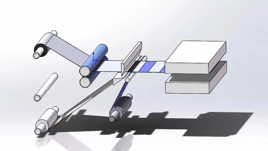 工作要素:横向裁切刀,异步拉开间距,同步模切。