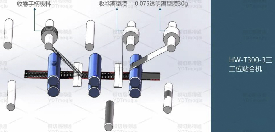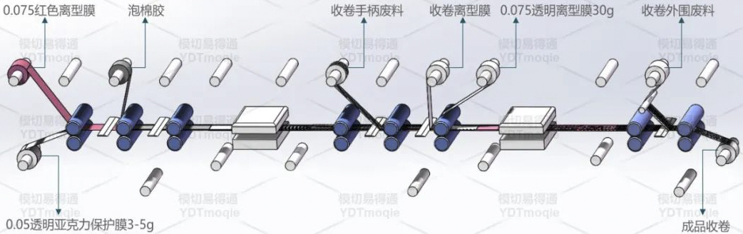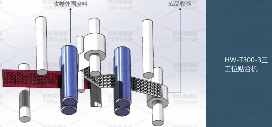 e. 贴合步骤:在贴合机上排除产品外框废料,成品收卷。