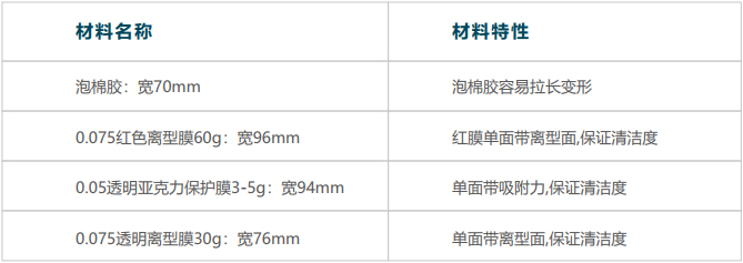 2. 再将泡棉胶居中贴合在0.075红膜离型面上。