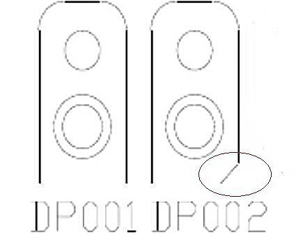 在工人加工生产中容易混淆正反面,所以可利用镶件外形差异化,如下图在镶件右下角剪口,就能轻易的分辨出来。
