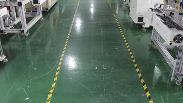如下图中利用鲜艳的颜色指引线来提醒员工注意安全区域和工作区域。