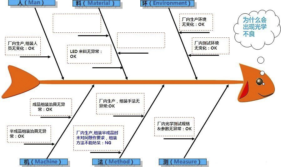 4. 把相同类型的问题分组,在鱼骨上标出;