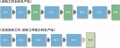 不良品的产生等问题会让企业增加质检工序。如果不究明问题的根源,就会让质检工序残留下来。理想状态是,查明不良品产生的原因,停止质检工序。