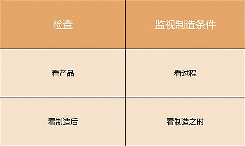 检查,是查看制造出来的产品。而监视制造条件,是关注制造时的过程。