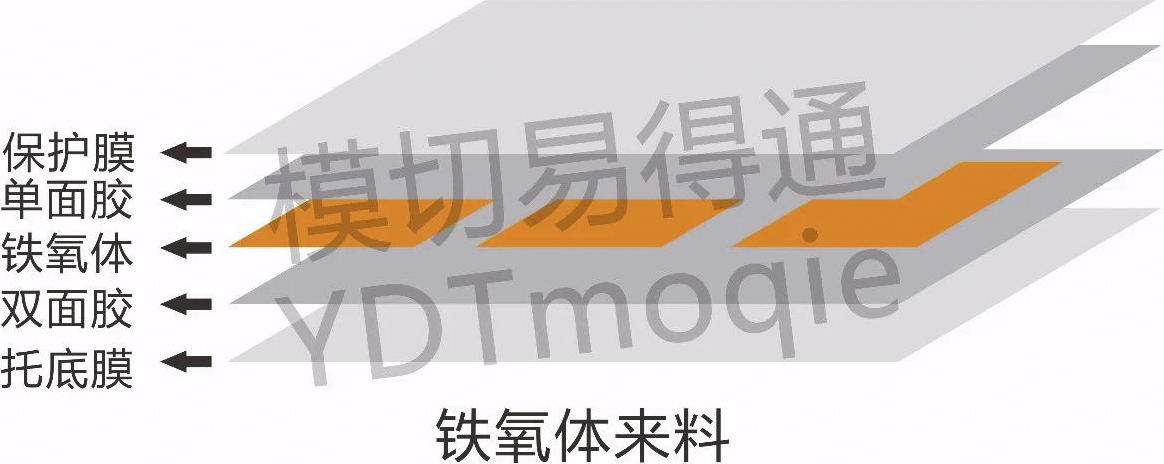 铁氧体隔磁片:一种硬度较高的磁片材料,来料为块状,需要进行覆膜后裁切,材料硬度较大,传统的加工方法容易伤刀,且片材加工,传统加工方法效率较低。