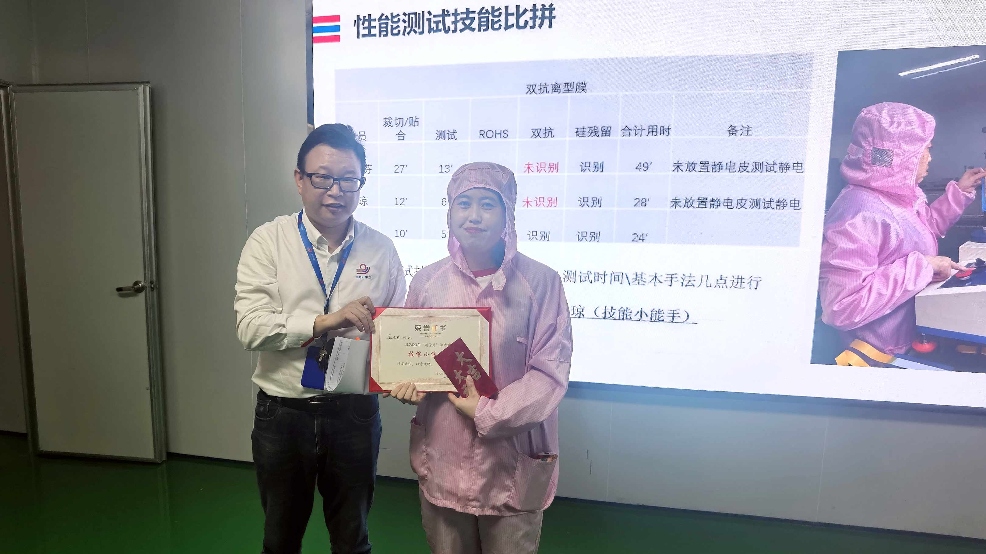本次总结活动表彰的人员名单有:后加工考核优秀人员韩欣欣、模切炸弹实验优秀鉴别员于成兵、优秀仓储部成品仓全员、模切技能优秀人员程晋波、性能测试优秀小能手康小琼、刀模绘制图纸质量选手卢泗生、订单履行准确率优秀组负责人刘琼、区域标识管理优秀区域原材料仓库区域与知识竞赛冠军组雄鹰队。