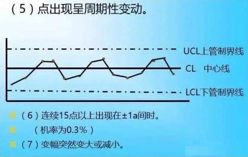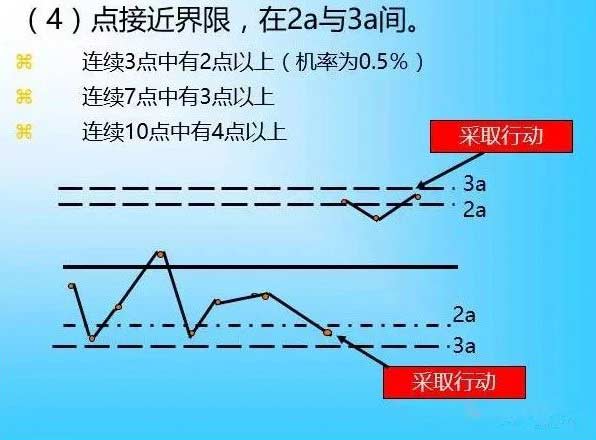 制程满足以上条件,虽可认为制程在管制状态,但不是说点超过了界限外也可以,这些超限的点必定有异常原因的,所以必须追究原因,并将之除去方可。