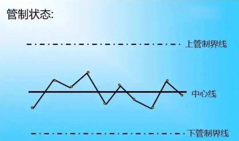 (1)管制状态满足下列条件,即可认为制程是在管制状态:①多数之点子集中在中心线附近,②少数之点子落在管制界限附近,③点之分布呈随机状态,无任何规则可循,④没有点子超出管制界限之外;
