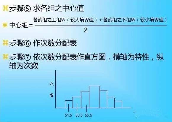 (1)由图较易了解分配的形态,掌握制程全貌:a.中心趋势、b.离散趋势、c.分配形状;