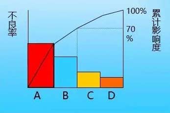 5、柏拉图的作用:掌握问题点:虽然分类很多,但实际上影响较大的只不过是2~3项,因此很容易找出问题出在那里。