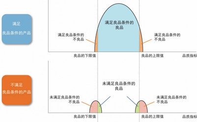 由于实际当中会有一定的偏差产生,所以会出现“明明满足良品条件但还是不良”以及“明明没有满足良品条件却还是良品”的情况。