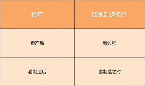 检查,是查看制造出来的产品。而监视制造条件,是关注制造时的过程。