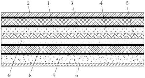 2.PET安全保护膜,第一PET膜层(1)与抗刮涂层(2)和抗菌层(4)之间以及第二PET膜层(8)与阻燃硅胶复合层(7)和硬化涂层(9)之间均通过OCA胶层(3)连接。