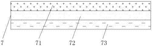 图中:1第一PET膜层、2抗刮涂层、3 OCA胶层、4抗菌层、5 TPU膜层、6离型膜层、7阻燃硅胶复合层、71阻燃层、72阻燃硅胶混合层、73硅胶层、8第二PET膜层、9硬化涂层。