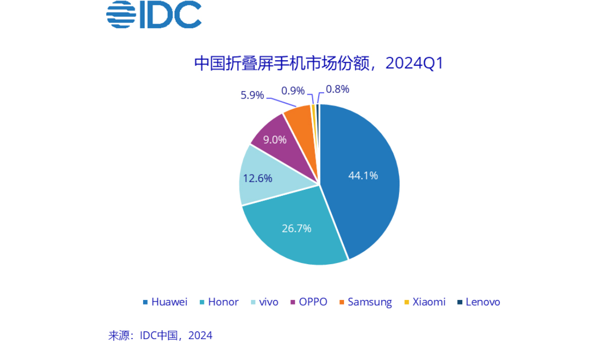 IDC报告:2024年一季度中国折叠屏手机市场迅猛增长,华为领跑市场份额,荣耀、vivo等紧随其后