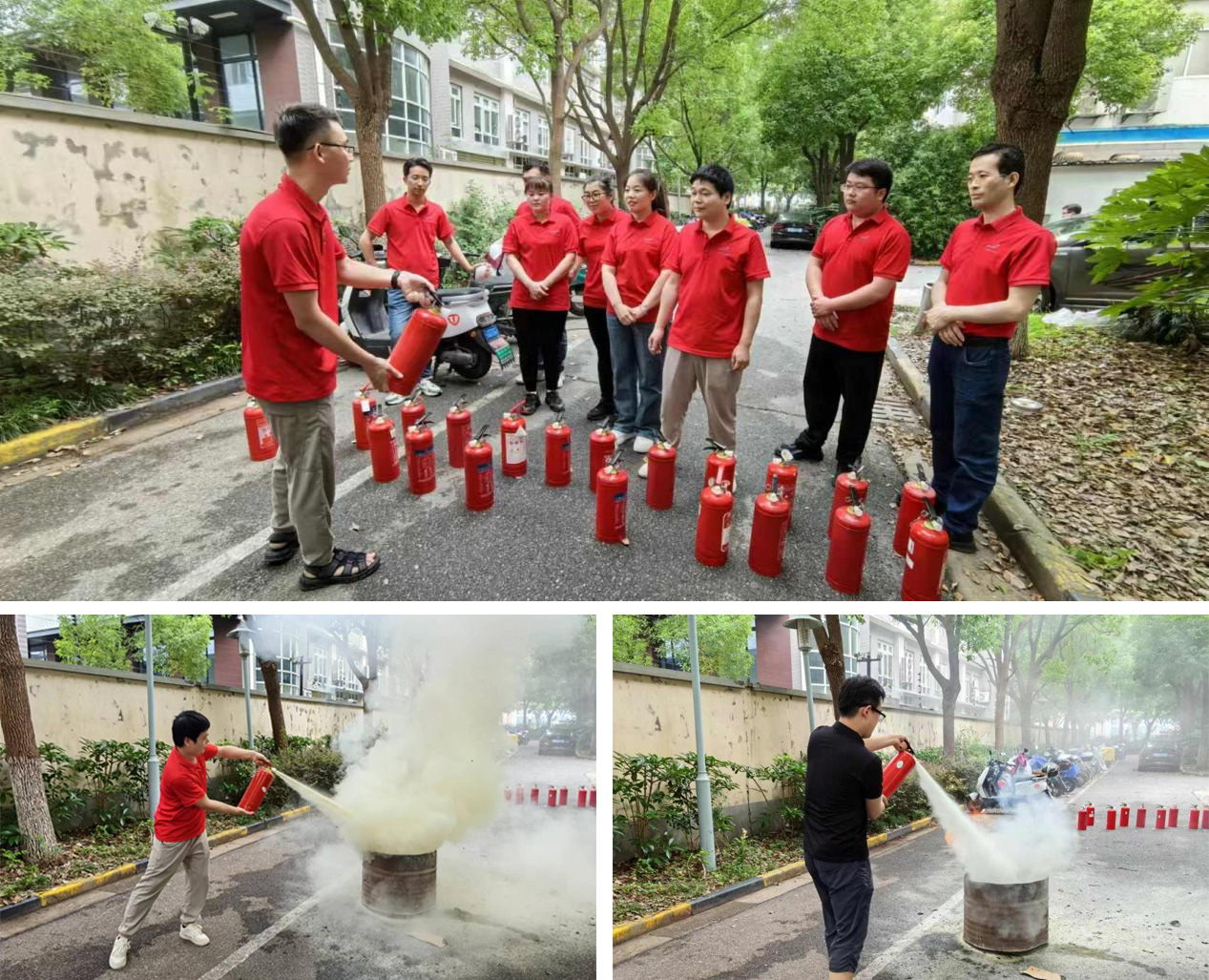 演练结束后,为进一步巩固实践效果,全体参演人员集中学习了灭火器使用的操作程序,现场体验了灭火器的操作使用方法,切实做到学以致用。